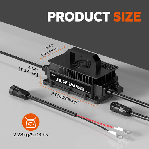 LiTime BatteriesLiTime 48 Volt (58.4) 18A LiFePO4 Battery Charger IP65 Waterproof OVERVIEW: Compatible with 48V and 51.2V lithium batteries, with wide AC input (1...