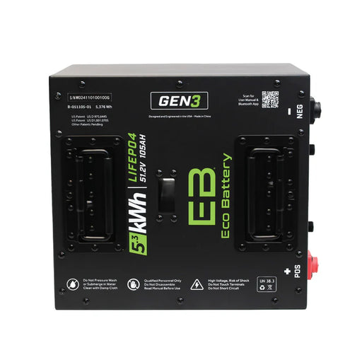 Eco BatteryEco Battery 51V 105Ah GEN3 “Thru Hole” LiFePO4 Lithium Battery An Eco Battery exclusive and top seller, the 51V 105Ah Thru-Hole battery features a ...