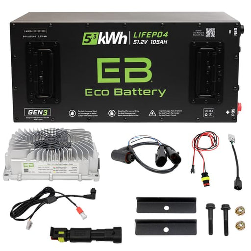 Eco BatteryEco Battery GEN3 51V 105Ah "Thru-Hole" Battery Bundle - EZGO RXV (Factory Plastic Tray) FEATURES: Extended Range: Go further and play longer with p...