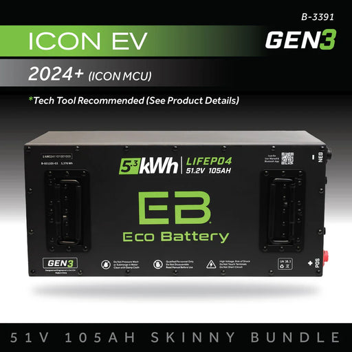 Eco BatteryEco Battery GEN3 51V 105Ah "Skinny" Battery Bundle - ICON EV, 2024+ (ICON MCU) FEATURES: Extended Range: Go further and play longer with plenty of ...