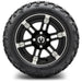 Make a bold statement and boost your golf cart’s performance with the MODZ 12' Aftershock Machined Black Tire and Wheel Combo. With its striking two-tone finish and deep concave design, this wheel set adds aggressive styling and upgraded traction whether you're cruising the streets or adventuring off-road.