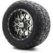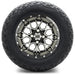 Make a bold statement and boost your golf cart’s performance with the MODZ 12' Vortex Machined Black Tire and Wheel Combo. With its striking two-tone finish and deep concave design, this wheel set adds aggressive styling and upgraded traction whether you're cruising the streets or adventuring off-road.