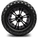 Compatible with Club Car, EZGO, Yamaha, and other major golf cart brands, this complete set features 4 stunning 14' MODZ Vampire Glossy Black wheels paired with your choice of performance-ready tires. Each combo comes pre-mounted and balanced for a hassle-free upgrade—just bolt them on and go.