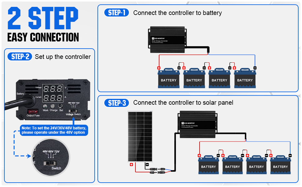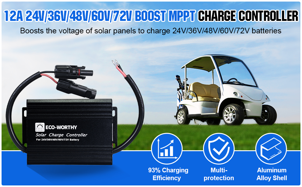 Eco-Worthy 12A Boost MPPT Solar Charge Controller Solar Panel Regulator for 48V/60V/72V