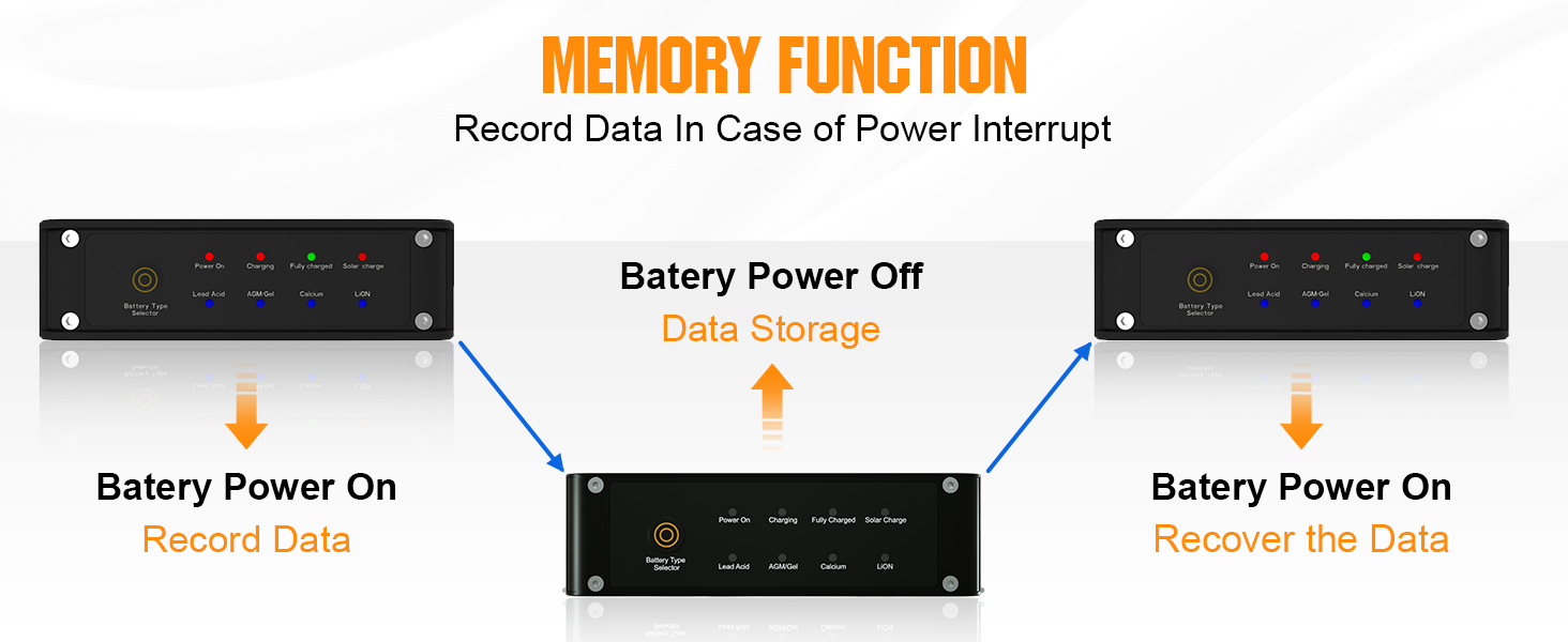 99% Efficiency MPPT: With IP65 level waterproof. MPPT solar intelligent control management system has charging memory function, which can record according to the user’s charging habits.