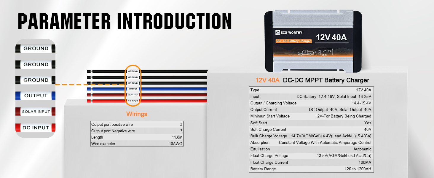 Eco-Worthy 12V 40A DC to DC Charger On-Board MPPT Battery Charger