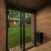The SaunaLife Garden Luxury-Series Model GL4 sauna cabin exhibits exceptional quality and attention to detail throughout. Its contemporary linear design is accentuated by contrasting exterior finishes and an integrated eaves and porch, which create an elegant, set-back appearance. Expansive full front glass provides plenty of natural light and outward views to further enhance the spaciousness of this luxurious environment.